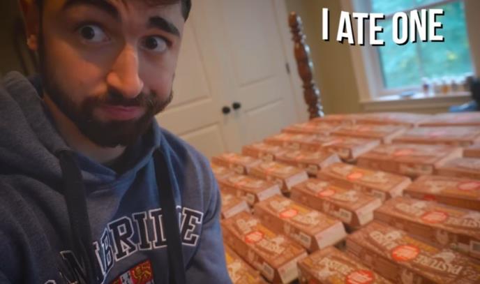 Na fotografiji koja je uz njegovu objavljena na tekstu koji je izašao u britanskom Dejli mejlu, vidi se više od 40 velikih kartona - pakovanja jaja koje je pojeo tokom svog jednomesečnog jaje-eksperimenta (eggs-periment).
