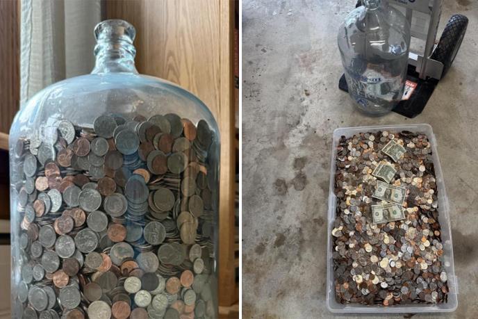UPDATE: The 70 year old coin jar has been sorted and counted- final total is $2052.76!
