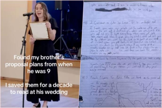 Kada je jedna žena pronašla planove za prosidbu svog brata koje je napisao kada je imao 9 godina, znala je da ih mora sačuvati da ih pročita naglas na dan njegovog budućeg venčanja.
