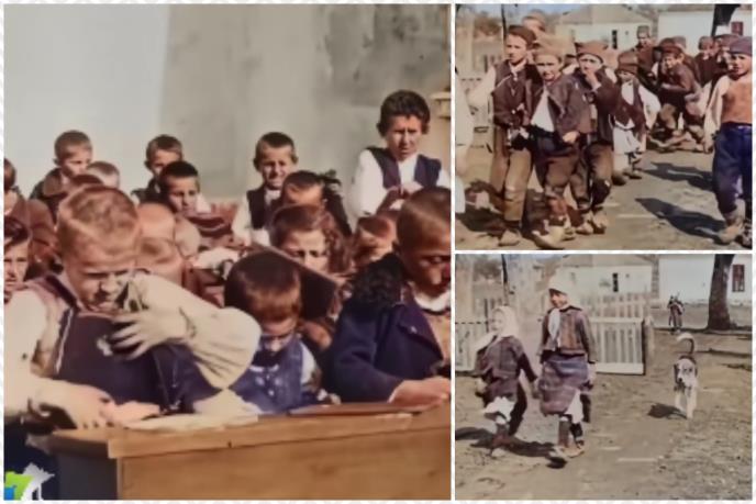 Fejsbuk stranica „Restauracije starih fotografija i videa“ objavila je jedan snimak iz vremena neposredno posle Prvog svetskog ratakoji je kolorizovala i restaurirala. Na snimku su posleratna deca u Srbiji koja idu u školu.