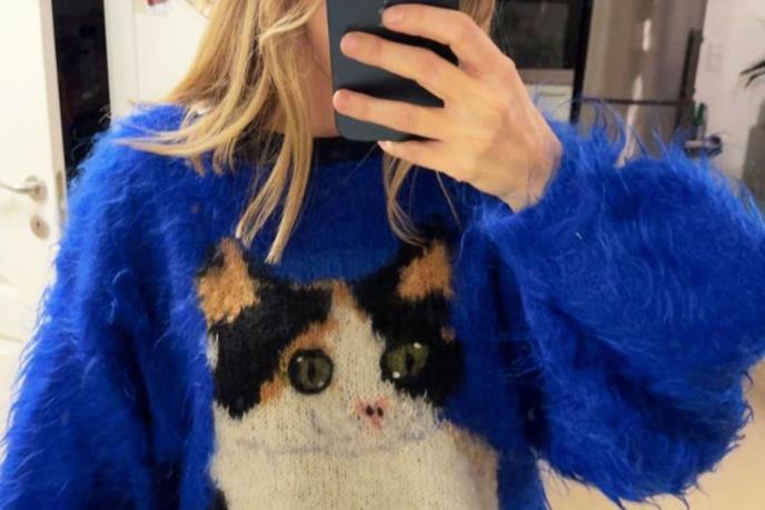 Giedre je pronašla džemper sa motivom mačke u lokalnoj second-hand radnji i odmah se zaljubila u njegov kvalitet i dizajn.