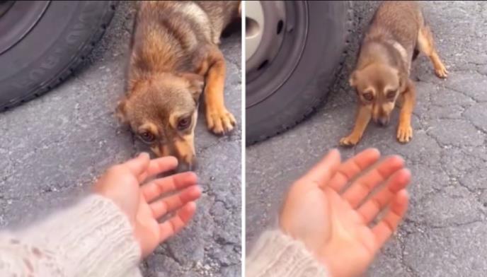 Dok se približavala psiću, on je prvo cvileo i pokušavao da se sakrije, očigledno uplašen i nesiguran zbog ranijih loših iskustava. Devojka je strpljivo stajala, pokušavajući da ga umiri blagim rečima i gestovima. Nakon nekoliko trenutaka, štene je skupilo hrabrost i polako joj prišlo. Taj trenutak bio je posebno emotivan – mališan je počeo da se mazi i pokazuje poverenje prema osobi koja mu je prišla s ljubavlju.