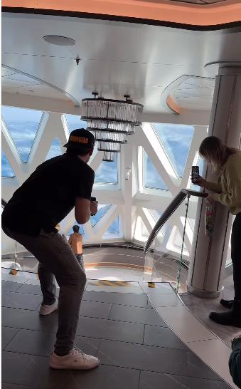 Svemu je svedočila, a i zabeležila, popularna blogerka Lesli En Marfi na čijem video snimku se mogu videti ogromni talasi koji silovito udaraju o prozore i kabinu broda.