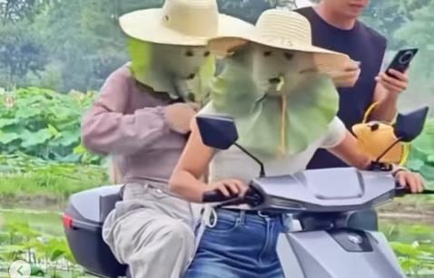 Žene u kineskoj provinciji Sičuan viđene su kako voze bicikle sa ogromnim listovima lotosa pričvršćenim za lice, s isečenim otvorima za oči – kao pametan, duhovit (i iznenađujuće efikasan) način da se zaštite od sunca.
