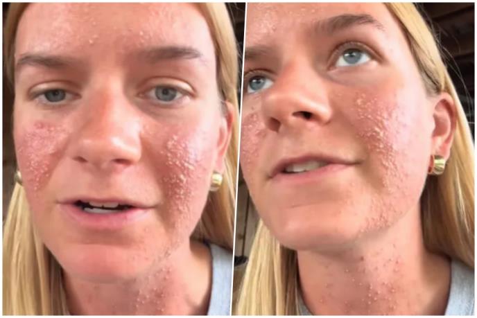 Sledećeg jutra, lice joj je bilo otečeno i deformisano, a osip se pretvorio u gnojne plikove. „Imala sam osećaj kao da me je sunce spržilo najgore moguće – koža mi je bila zategnuta, vrela, i užasno bolna,“ rekla je. „Bilo je toliko neprijatno da sam odlučila da idem na hitnu.“