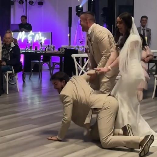 Snimak sa jednog venčanja postao je viralan na internetu, a reakcije javnosti su urnebesne. Naime, sve se dešava u terenutku kada mladenci izlaze na podijum da zaplešu. Posle par sekundi mladoženja pada kao pokošen, a odmah je na podijum uleteo i kum pokušavajući da spasi svog prijatelja.