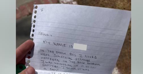 Na papiru istrgnutom iz sveske pisalo je: "Pozdrav, moje ime je (precrtano). Početkom 80-ih živeo sam ovde. Nešto čudno događalo se u zadnjoj spavaćoj sobi. Pitao sam se da li se to još uvek dešava. Mislim da je bio duh."