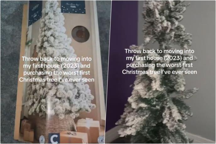 "Prisećanje na useljenje u moju prvu kuću (2023) i kupnju najgore prve novogodišnje jelke koju sam ikad video", rekao je snimajući razočaravajući prizor.