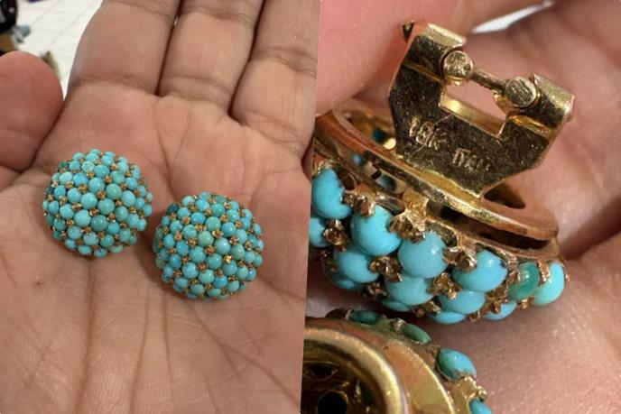 „Prelep vintage ulov! Ovi komadi potiču iz perioda od šezdesetih do ranih sedamdesetih godina i izrađeni su u Italiji. Čini se da imaju prelepe male italijanske tirkizne kamenčiće, brušene u kabošon obliku, postavljene u sitne držače oblikovane poput malih cvetića. Iako su označeni žigom 18k, preporučujem da ih date na testiranje. Ne primećujem gubitak boje oko ivica, što bi bio tipičan znak pozlate preko jeftinijeg metala. U svakom slučaju, čestitam na ovom neverovatnom pronalasku“, primetio je drugi.