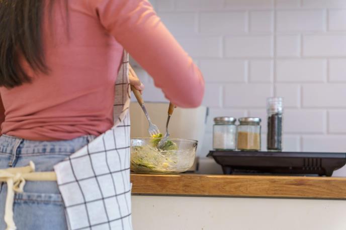 žena kuva u kuhinji povrće