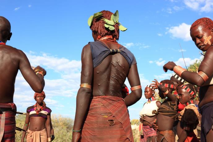Centralni deo njihovog kulturnog identiteta je obred inicijacije koji uključuje nemilosrdno bičevanje žena štapovima. Duboki ožiljci i tragovi krvi koji ostaju nakon udaraca ne posmatraju se kao povrede, već kao simboli lepote i snage.