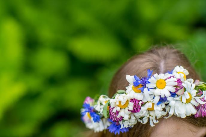 Devojčica sa cvetnim vencom na glavi