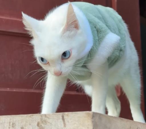Jedna takva mačka, Džolin, svojim izrazom lica svima je jasno stavila do znanja da nimalo ne odobrava džemper koji nosi. Video na TikToku, uz umirujuću klavirsku muziku, prikazuje ukočenu belu mačku Džolin čiji pogled govori sve. U svetlozelenom džemperu sedi gotovo nepomično, kao da time pokazuje koliko joj sve to ide na živce. Zbog celokupnog prizora deluje kao da je izašla pravo iz nekog crtanog filma.