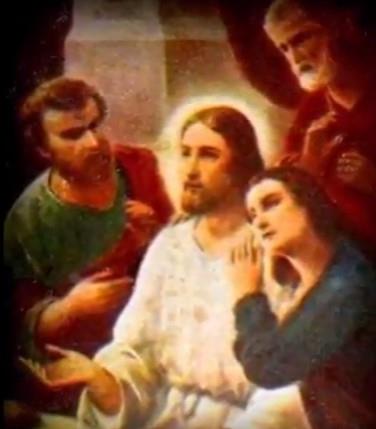 „A književnici i fariseji dovedoše k njemu ženu uhvaćenu u preljubi, i postavivši je na sredu rekoše mu: Učitelju, ova je žena uhvaćena sad u preljubi; A Mojsije nam u zakonu zapovedi da takve kamenjem ubijamo; a ti šta veliš? Ovo pak rekoše kušajući ga da bi ga imali za što okriviti.
