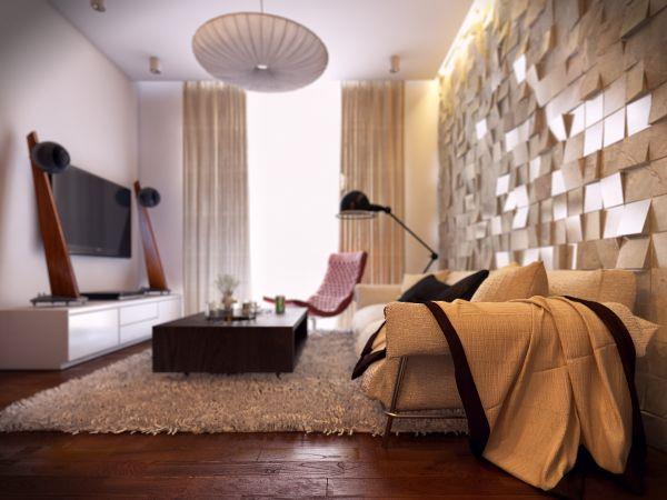 Ukoliko želite da unesete u dom zanimljive detalje sjajna ideja je da izaberete kreativne tapete ili stikere za zid. Tako u ovom apartmanu jedan deo krasi tapeta sa motivacionom porukom, a drugi deo neobične i sjajne pločice.