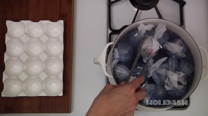 6. Izvadite jaja, ostavite da se ohlade, a zatim odmotajte jaja.