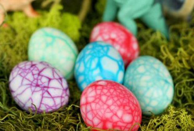 Sipajte vodu u posudice, dodajte boje za farbanje jaja i stavite po jedno u svaku čašu. Neka ostanu tu nekoliko sati ili preko noći, a onda ih oljuštite do pola. Donji deo ljuske ostavite zbog dekoracije, a i neka se njome pozabave deca.