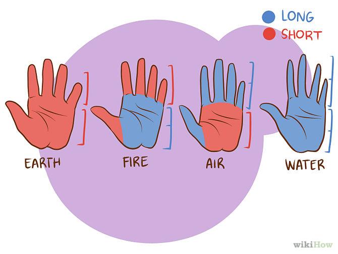 Prema njihovom obliku, ruke predstavljaju jedan od četiri elementa prirode: vazduh, voda, vatra i zemlja. Vaš element će otkriti vaš karakter i vaše prirodne sposobnosti.