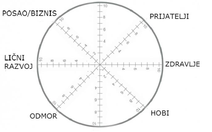 Procenite svoje uspehe za proteklu godinu, u svakoj oblasti na skali od 1 do 10. Nakon toga spojite tačke linijom po krugu.