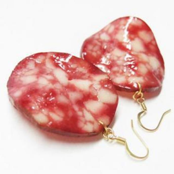 Japanski proizvođač asesoara je verovatno pomislio da će lepa žena biti još privlačnija ako se okiti zavodljivom hranom, pa je napravio minđuše koje izgledaju kao naseckana čajna kobasica ili crne masline. Ukras za kosu sa prženom slaninom ili suvim vratom svakako će biti mamac za ljubitelje svinjskog mesa.