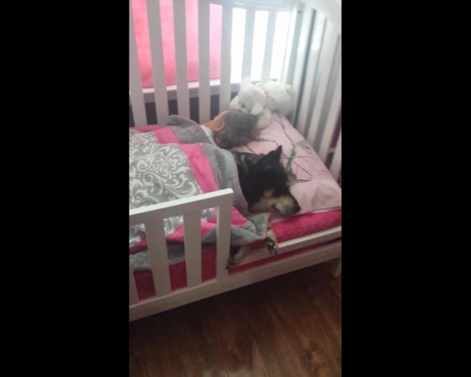 Našla ga je tek kada je ušla u spavaću sobu svoje ćerkice koja je i dalje bila u carstvu snova. Kuca se zavukla u krevetić pored svoje malene vlasnice, a čak se i pokrila.