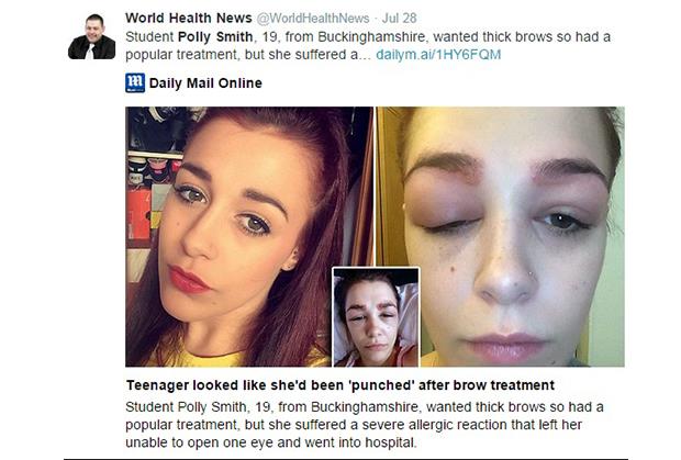 Tokom samog tretmana sve je prošlo u najboljem redu, ali već sledećeg dana kreće pravi horor mlade Poli. Prvo su joj obrve počele da crvene i otuču joj. Ali na tome se nije zaustavilo. Već sledećeg dana, Poli nije mogla da otvori jedno oko, a drugo joj je bilo totalno natečeno.