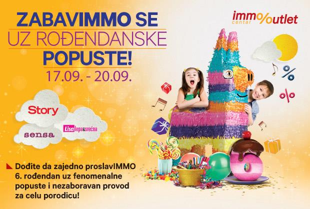 Magazini Story, Sensa i Lisa lepa i srećna vas pozivaju na proslavu šestog rođendana Immo Outlet Centra