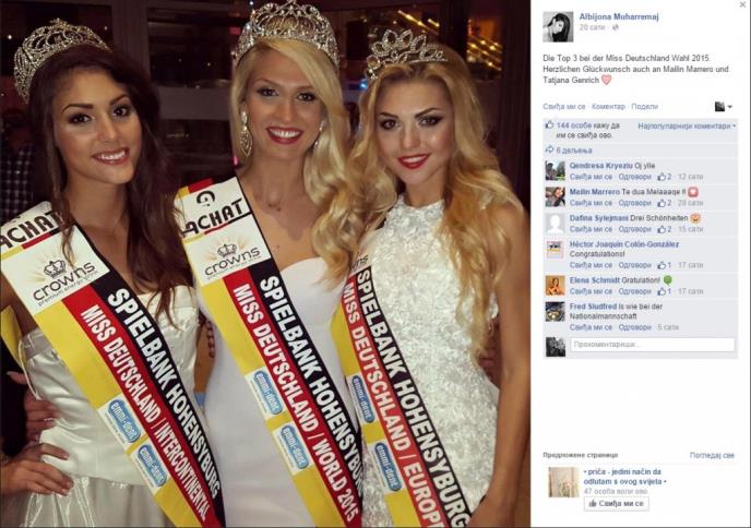 Dvadesetogodišnja Albijona Muharemaj, Albanka iz Minhena proglašena je za Mis Nemačke 2015. godine.