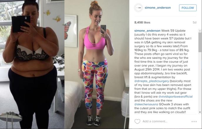 Njen uspeh privukao je dežurne kritičare, koji su je optuživali da laže jer nisu videli višak kože koji joj je ostao nakon toliko drastičnog gubitka težine. Kako bi im dokazala da je lažno optužuju, Simon je objavila fotografije na kojima se vidi koža koja joj je visila.