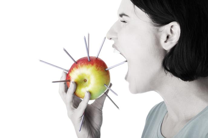 Jabuku, po mogućnosti neprskanu, operite i osušite, ekseri od čistog gvožđa (oko 10 kom) i malo bakrene žice dobro očistite alkoholom - bakrena žica pomaže apsorpciju gvožđa, osušite i nabodite u jabuku, najbolje oko peteljke. Takvu jabuku ostavite da odstoji preko noći.