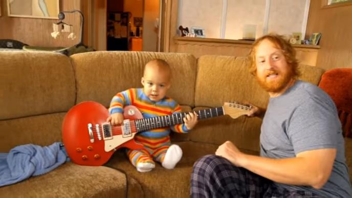 Roditelji ovog bebca su ljubitelji hevi metal muzike, pa je tako dečak naučio da "svira" gitaru mnogo pre nego što je prohodao