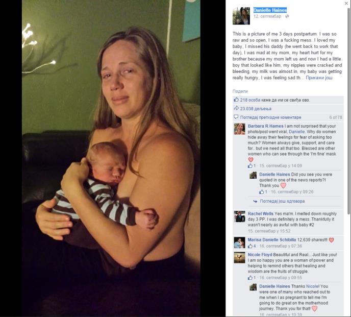 Na svom Fejsbuk profilu objavila je fotografiju koja je nastala tri dana nakon rođenja njenog sina uz iskrene i moćne reči koje su žene prepoznale i šerovale preko 23.000 puta.
