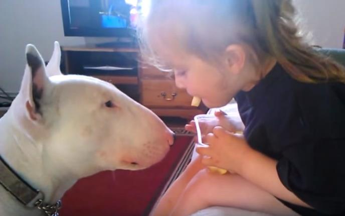 Ova devojčica je nahranila svog psa, tako što mu je iz svojih usta davala da jede.