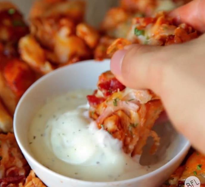 Pileće grudi isecite na kockice, a zatim ih kratko propržite u tiganju. Dodajte BBQ sos i prodinstajte sve zajedno. Ukoliko nemate BBQ sos, koristite kečap.