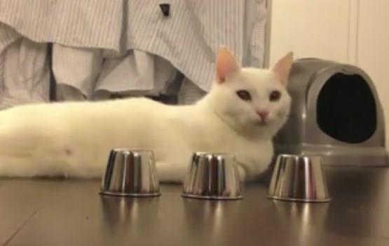 Da je ova mačka pametnica tvrdi video koji je postao viralan na internetu. Gazda je ispred svog ljubimca stavio tri posude dok je ispod jedne sakrio kuglicu. On je sve posude izmešao, dok je maca sve gledala, a onda je došao red na pogađanje. Bez imala dvoumljenja ona je pokazala i pogodila posudu koja je krila kuglicu.