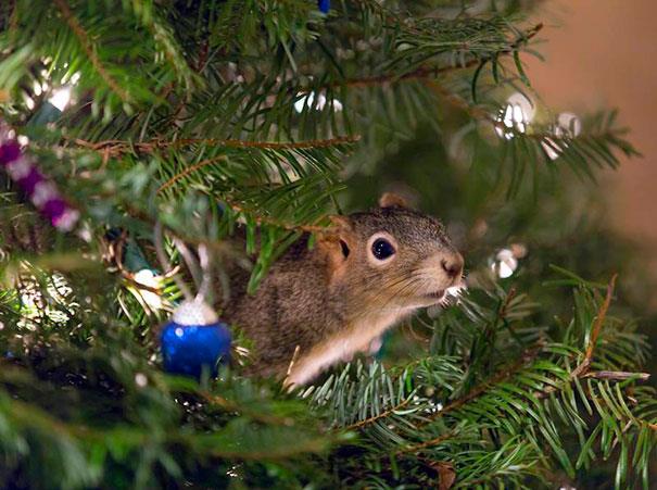 (FOTO) PRONAŠLI JE ZGRČENU PORED PUTA: Ova veverica sada živi sa porodicom i obožava Božićnu jelku