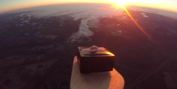 Koristio je samo drvenu varjaču i vremenski balon kao svemirski brod koji je poslao u vasionu. Na ovaj izum je zakačio kamericu kako bi to swve mogao da snimi. Na kraju video snimka, svoju ljubav je pitao da se uda za njega.