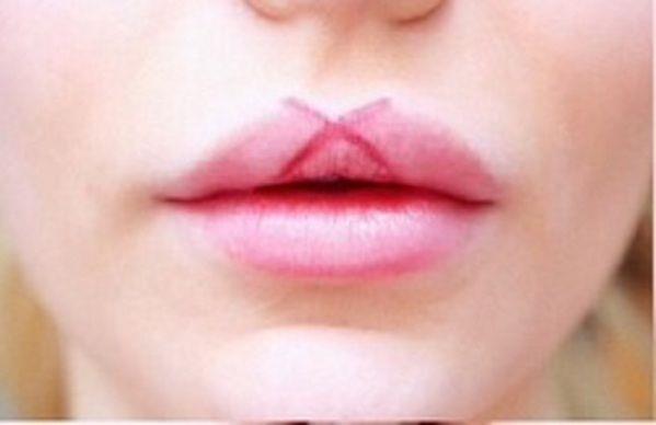 Počnite tako što ćete nacrtati "X" na gornjoj usni kao što je prikazano na slici.