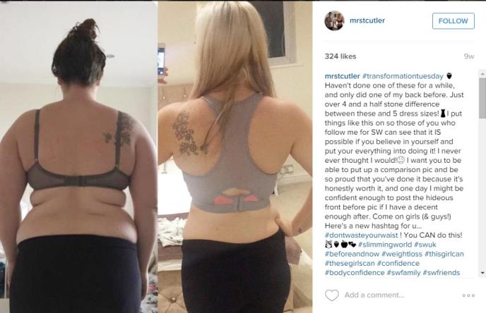 "Uhvatila sam sliku sa puštenim stomakom da me seća na šta sam ličila pre tretmana. To me je držalo na pravom putu, tako sam nastavila da mršam. Bila sam oduševljena kada sam videla koliko ljudi poštuje to što sam uradila. Prošlo je 36 nedelja od promene u mom životu i nikada više neću gledati u nazad. Nisam još uvek postigla moj pravi cilj, ali idem ka tome."