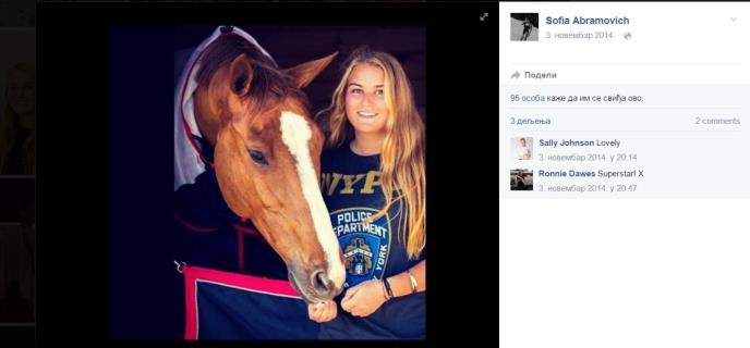 Taj sport joj čak i dobro ide i druži se sa devojkama koje dele tu strast. Iako neki tvrde da Roman Sofiju drži na “kratkoj uzici”, drugi smatraju da to nije nimalo čudno kad znate koliko je loš primer Romanova starija ćerka Ana koja živi i studira u Njujorku, gde neprestano ide sa zabave na zabavu.