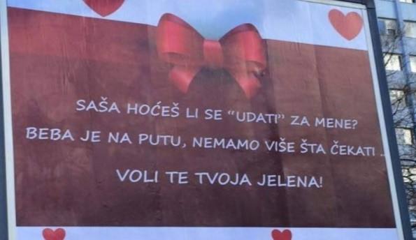 U Banjaluci je jedna devojka na krajnje originalan način zaprosila svoga momka, porukom na bilbordu kod Gimnazije, u Bulevaru cara Dušana.