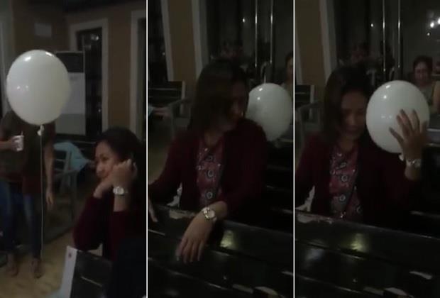Jedan od balona počeo je da kruži oko Džoj, dodirnuo je i zatim odleteo, a celu ovu situaciju zabeležila je kamerom Trebijeva ujna.