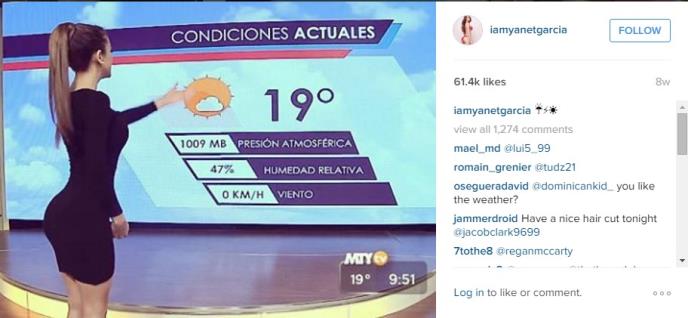 U poslednjih godinu dana veće televizijske mreže angažuju atraktivne devojke kako bi sebi obezbedili visoku gledanost. Janet Garsija i vremenska prognoza ovih dana su postali veoma popularni na drušvenoj mreži Instagram.