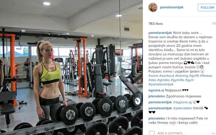 "Danas sam shvatila da stanem u najdraže traperice iz srednje škole haha, da u poslednjih skoro 20 godina imam identičnu kilažu… Samo bi mi to bilo dovoljno za motivaciju dok treniram, ali nažalost ja sam već duboko zaglibila u ljubav prema treningu, čak i kad putujem nosim tegove, budala’, napisala je 35-godišnja Pamela Ramljak.