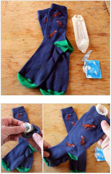 Verovatno ćete prvo pomisliti na one šale kad smo bili klinci i bacali kondome pune vode sa terasa. Zapravo, zbog njegove elastičnosti, oni su idealni za držanje vode u njima. Tako da, kada idete na kampovanje ili na dugačku vožnju biciklom možete da držite kondom sa vodom u čarapi i imaćete dosta sveže vode kada ste žedni.