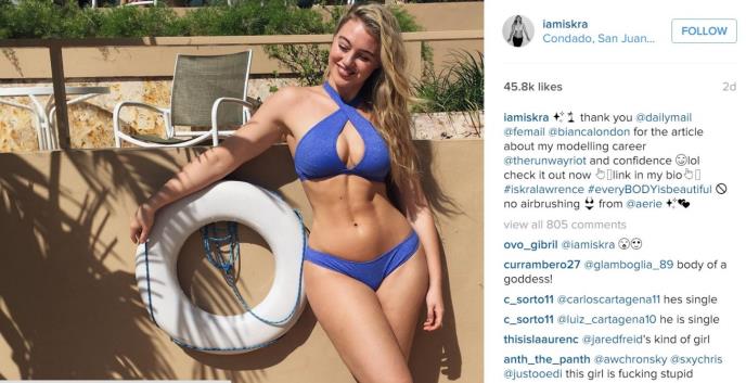 Baš kao i njena koleginica Ešli Grejam i Iskra svojom pojavom i fotografijama raspiruje raspravu da li je punijim damama zaista mesto u modnoj industriji i da li je ovakvo telo poželjno i seksi. Dok su neki izričitog mišljenja da su plus-sajz manekenke žene s očigledno nezdravim viškom kilograma, one to ne smatraju. Nakon što je dobila brojne negativne kritike na svoj izgled, Iskra je na interesantan način odgovorila svim kritičarima.