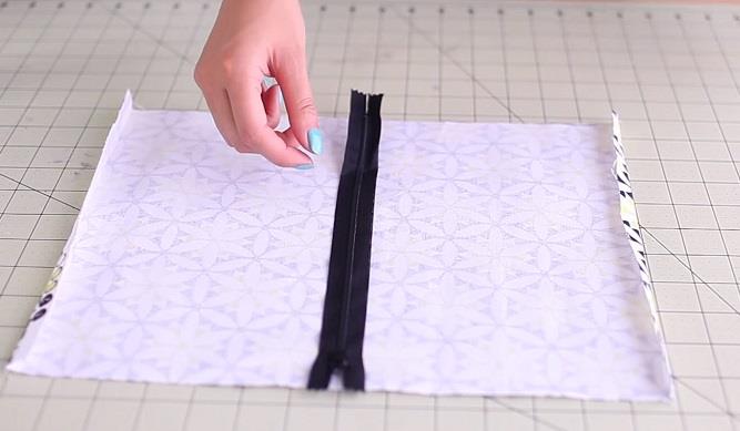 Zatim, položite tkaninu i stavite rajsferšlus po sredini.