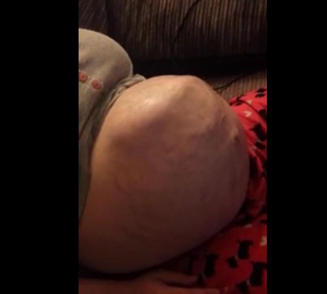 Ona je u 39. nedelji trudnoće i koža na njenom stomaku je toliko tanka da se već vidi obris bebe, posebno kada se mrda u stomaku.