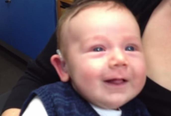 Iako je plakao dok su mu postavljali slušni aparat, nedugo zatim suze je zamenio osmeh.