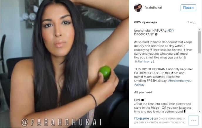 I šta onda da radimo? Kao i za većinu stvari, rešenje je veoma jednostavno, i nalazi se u prirodi. Naime, modna blogerka Fara Dukej ima sjajnu ideju - dezodoranse zamenite limetom.